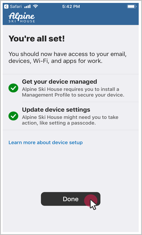 You'll know that setup is complete when all items in the list show a green circle. Tap Done.